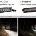 Compact. The lightbar is based on a narrow-profile extruded housing, to allow fitment in small and tight areas. At less than 42mm tall, they’ll fit in many places a traditional dual-row light bar won’t, while cutting total weight as well. The heatsink design also drastically reduces wind noise, and does not whistle in the wind like many generic housings.