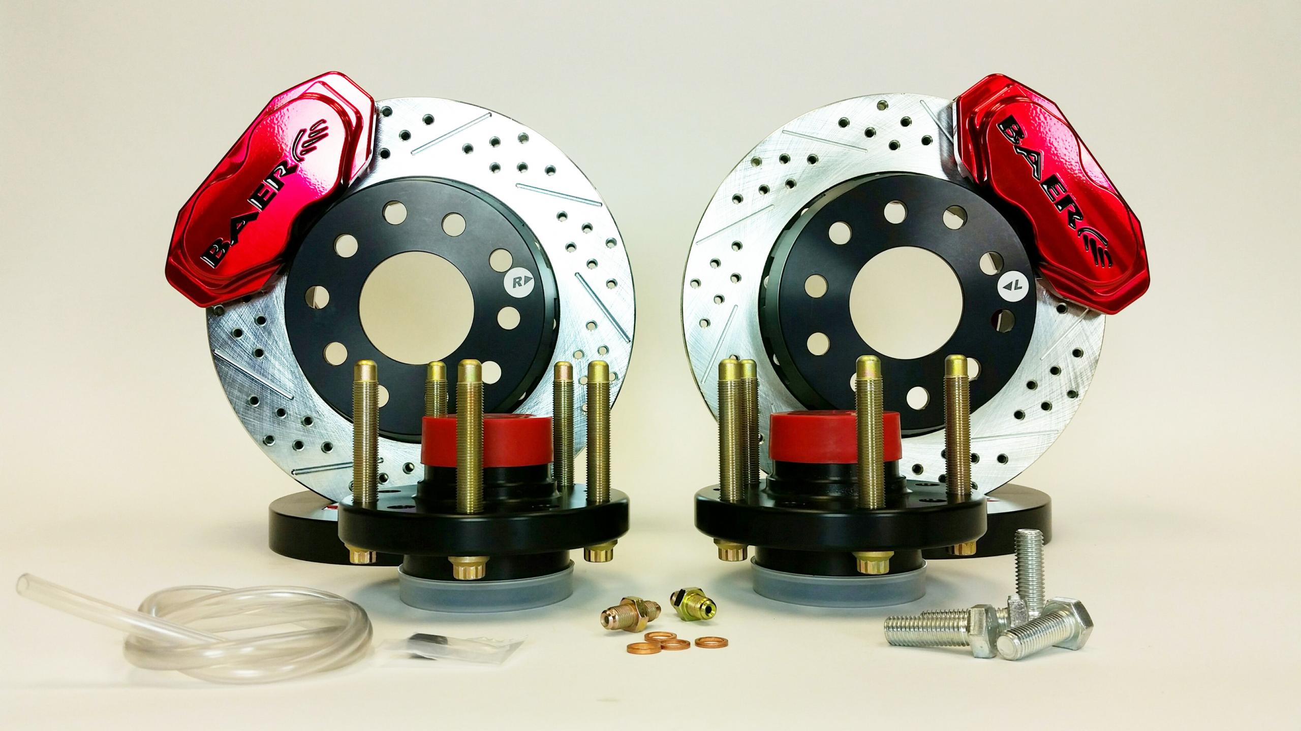 This front system features the S4 4-piston caliper mounted to a 11 inch 2-piece slot, drill, zinc plated rotor. Baer systems include calipers that have D.O.T. compliant dust and weather seals. Quality bearings used, along with NAS high grade stainless hardware for our pre-assembled 2-piece rotor. The SS4+ is designed just like Baers larger systems, but in a smaller package for 15 inch wheels. This is the first drag race system designed specifically for heavy, fast cars that might see street use. Rotors are vented, and calipers have dust seals. Hubs come with ARP 1/2 inch x 20 Race Studs.
