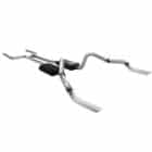 This American Thunder® exhaust system comes as a complete true dual crossmember-back exhaust for your 1969 Chevrolet Camaro or Pontiac Firebird with V8 engine. These dual systems feature 2.50-inch mandrel-bent stainless steel tubing for maximum performance, includes a built-in H-pipe/balance tube flowing into a pair of Super 44® mufflers that deliver a moderate to aggressive interior and exterior tone and are suited to the enthusiast who wants their performance to be heard. The 2.50-inch tailpipes exit straight out under the rear bumper and are finished off with 2.50-inch angle-cut brushed stainless steel tips and includes all hangers and necessary hardware for installation. Like all Flowmaster® systems, the benefits include improved throttle response, power and mileage and is covered by our Lifetime Limited Warranty. To fit Convertible models without modification to the factory X-brace. You will need to shim the brace with 3/8-inch of spacers, or replace the factory X-brace with Hotchkis Suspension part# 1404 X-brace.