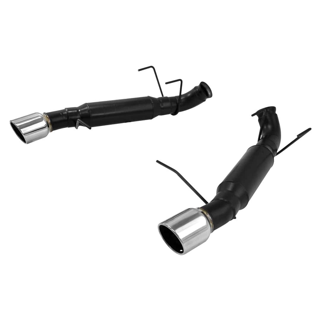 This Flowmaster® Outlaw Axle-back exhaust system is specifically designed for 2013-2014 Ford Mustang GT 5.0L coupes and convertibles. The system features a pair of race proven Outlaw® mufflers for an aggressive exterior sound level with a moderate interior sound level. Features include 2.50-inch connections for an easy fit to the stock mid-pipe then the inlets quickly expand to full 3.00-inch mandrel-bent inlet tubing leading into a pair of Outlaw mufflers for maximum performance. The system is supported from the factory hanger locations for an easy and hassle free installation that can be done at home and is finished off with a pair of large 4.00-inch polished stainless steel tips for that performance look and sound that you’ve come to expect from Flowmaster.