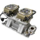 - Fits on intake manifolds with flange spacing between 6.43″-13.5″ (Includes most Edelbrock Manifolds)