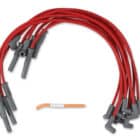 Engineered from the inside out, the 8.5 offers everything you have ever wanted in a wire; incredibly low resistance without electronic interference! In a single 12 inch length of Super Conductor Wire there is only 40 – 50 ohms of resistance! That is the lowest resistance of any helically wound wire. To accomplish this, we use a copper alloy conductor due to it’s great voltage carrying capabilities. The low resistance results in less loss in spark energy so more reaches the spark plug. The conductor is wound extremely tight around a special center core. So tight in fact, that there is over 40 feet of conductor wrapped into a single foot of plug wire. This winding procedure, combined with a ferro-magnetic impregnated center core, produces an extremely effective Electro Magnetic Interference (EMI) “choke”. This choke, or suppression capability, keeps the EMI inside the wire where it cannot interfere with other electronics on your vehicle. The outer sleeve that surrounds the conductor assembly is just as impressive. A proprietary blend of silicone and synthetic material produce a sleeve that is highly resistant to high heat as well as abrasion and tears. The MSD’s 8.5mm spark plug terminals feature Dual Crimp terminals. As the name implies, the terminals feature two crimps; one for the sleeve of the wire and another separate crimp to grasp the conductor. The MSD’s 8.5mm spark plug terminals feature Dual Crimp terminals. As the name implies, the terminals feature two crimps; one for the sleeve of the wire and another separate crimp to grasp the conductor.